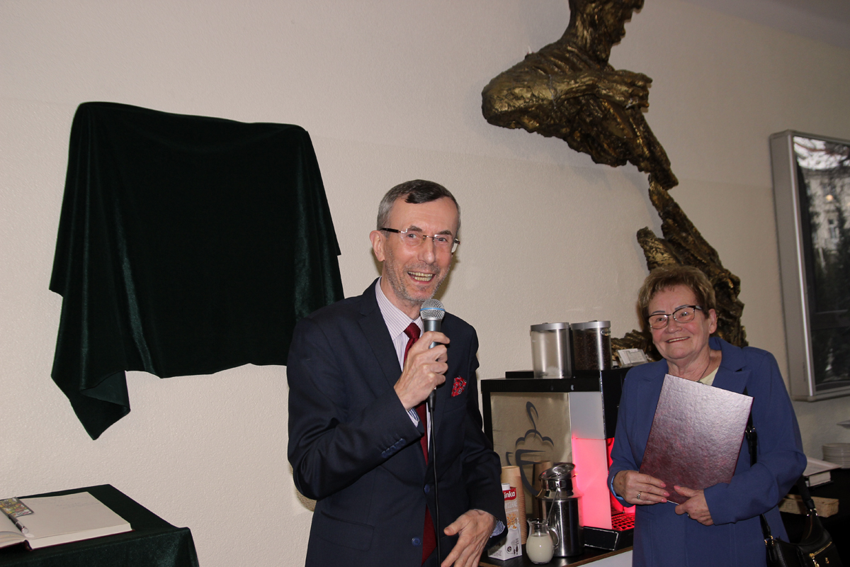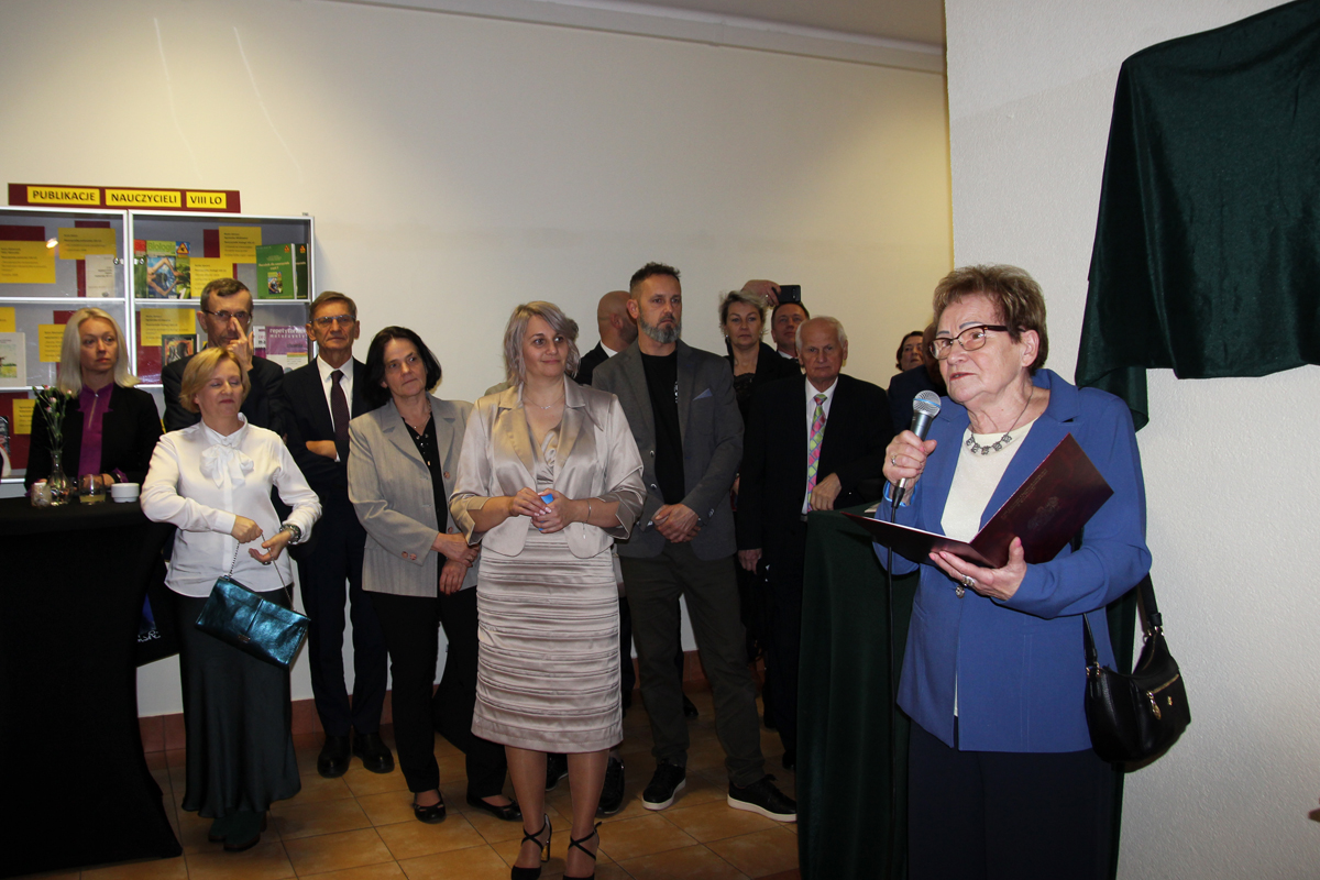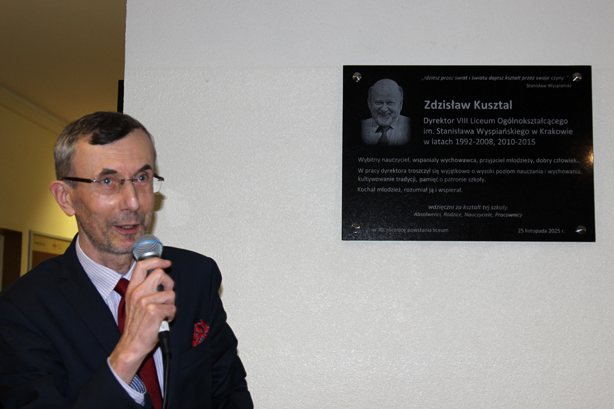 W przerwie kawowej absolwent Ósemki pan prof. Dr hab. Jan Wiktor Tkaczyński z UJ odsłonił tablicę pamiątkową upamiętniającą działalność nieżyjącego już dyrektora Zdzisława Kusztala, który najdłużej kierował pracą Liceum i któremu szkoła zawdzięcza wysokie miejsce wśród najlepszych liceów Krakowa oraz wzrost popularności wśród kandydatów. Laudację wygłosiła pani Grażyna Tomaszewska, która była jego zastępczynią 21 lat.