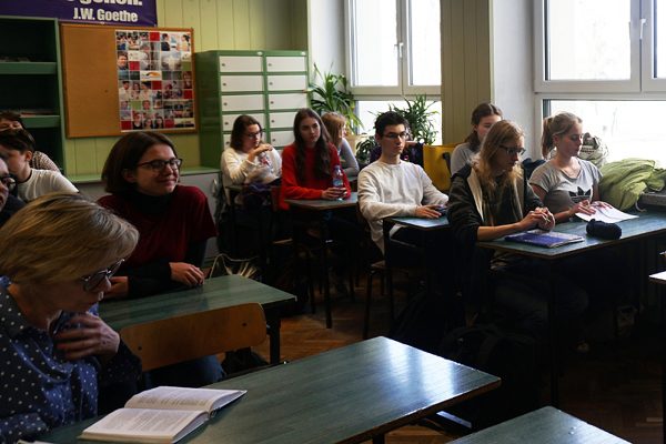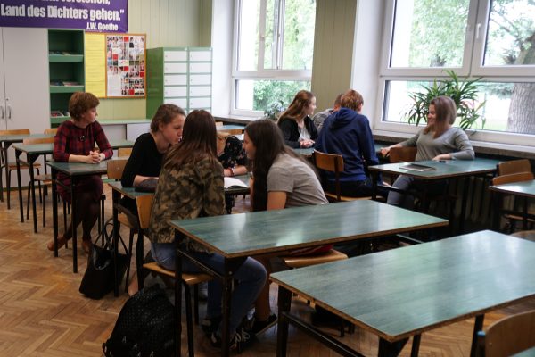 Lekcje języka niemieckiego promujące książkę W. Borcherta “Draußen vor der Tür” (“Pod drzwiami”) przeprowadzili: Mikołaj Z. i Kuba F. (dwukrotnie) oraz Gabrysia S. i Paulina.
