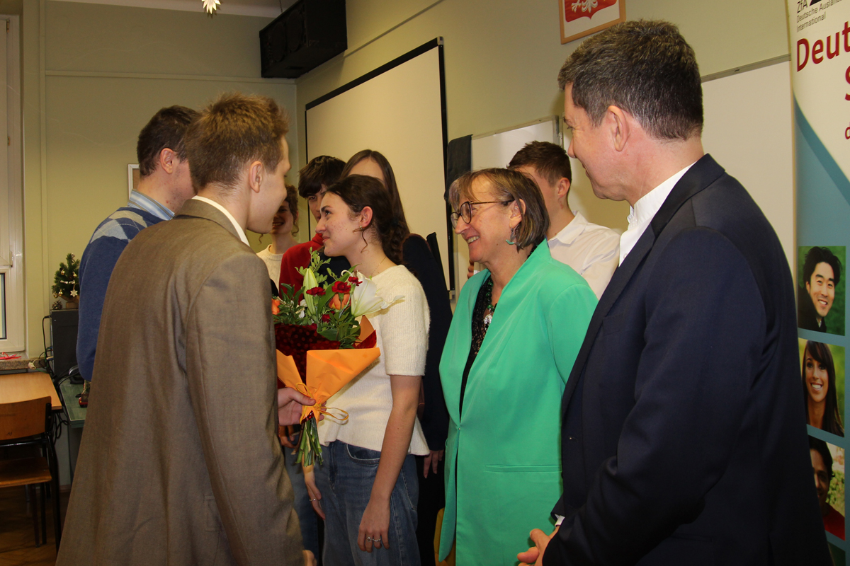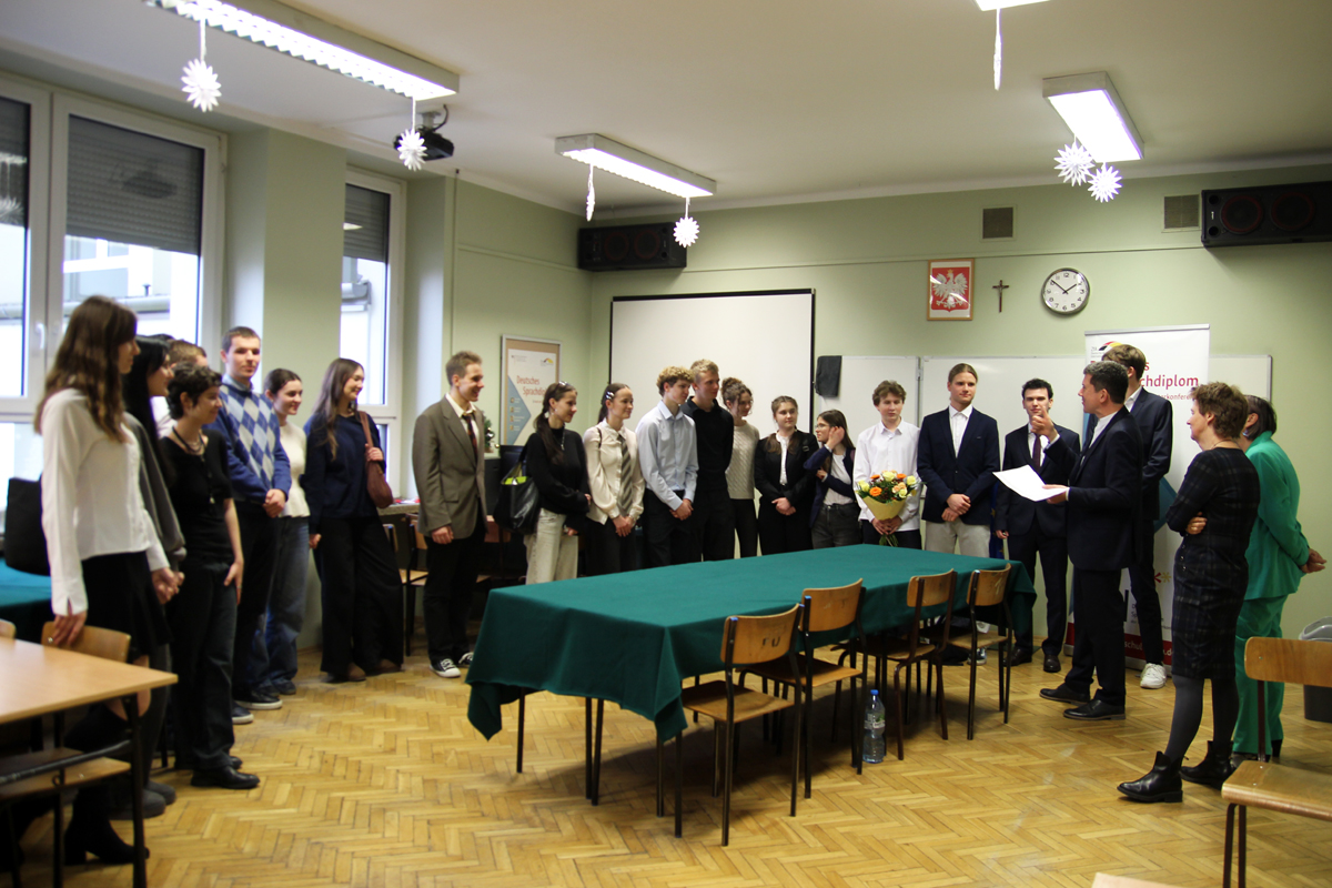 W poniedziałek i wtorek 20 uczniów z naszej szkoły zdawało ustny egzamin DSD II. Wszyscy zdali. Teraz będą czekać na wyniki egzaminu pisemnego, który sprawdzany jest w Niemczech. Trzymamy kciuki.